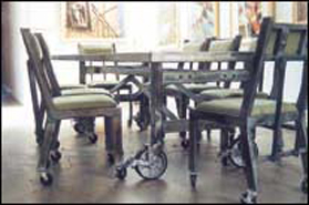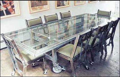 Felissimo Conference table and chairs, galvanized steel and glass. Japan